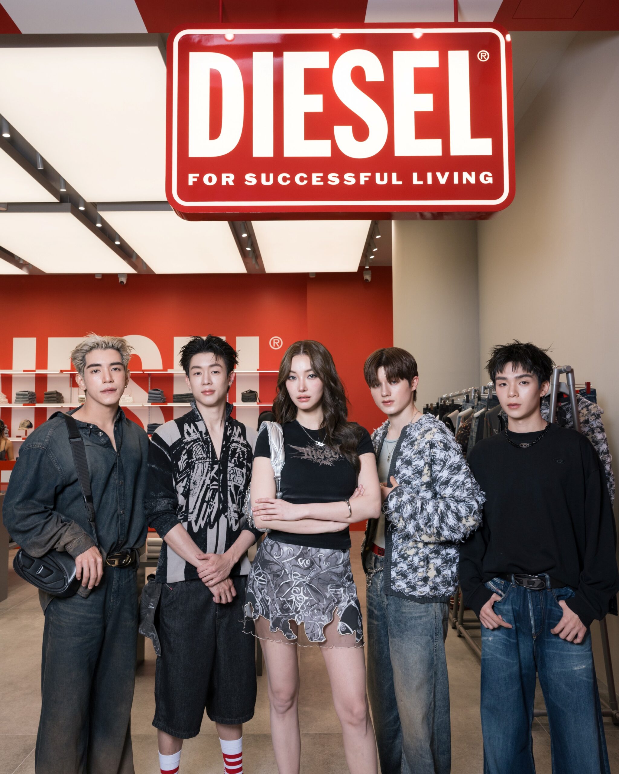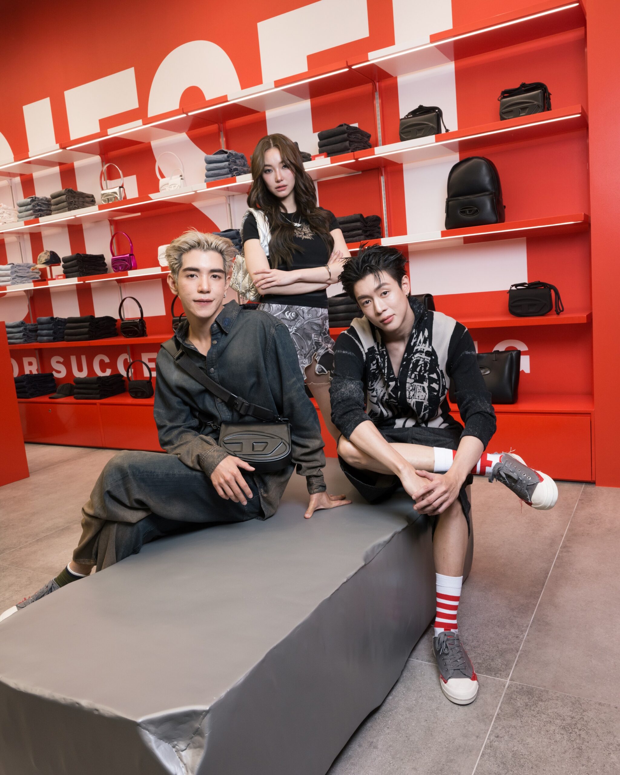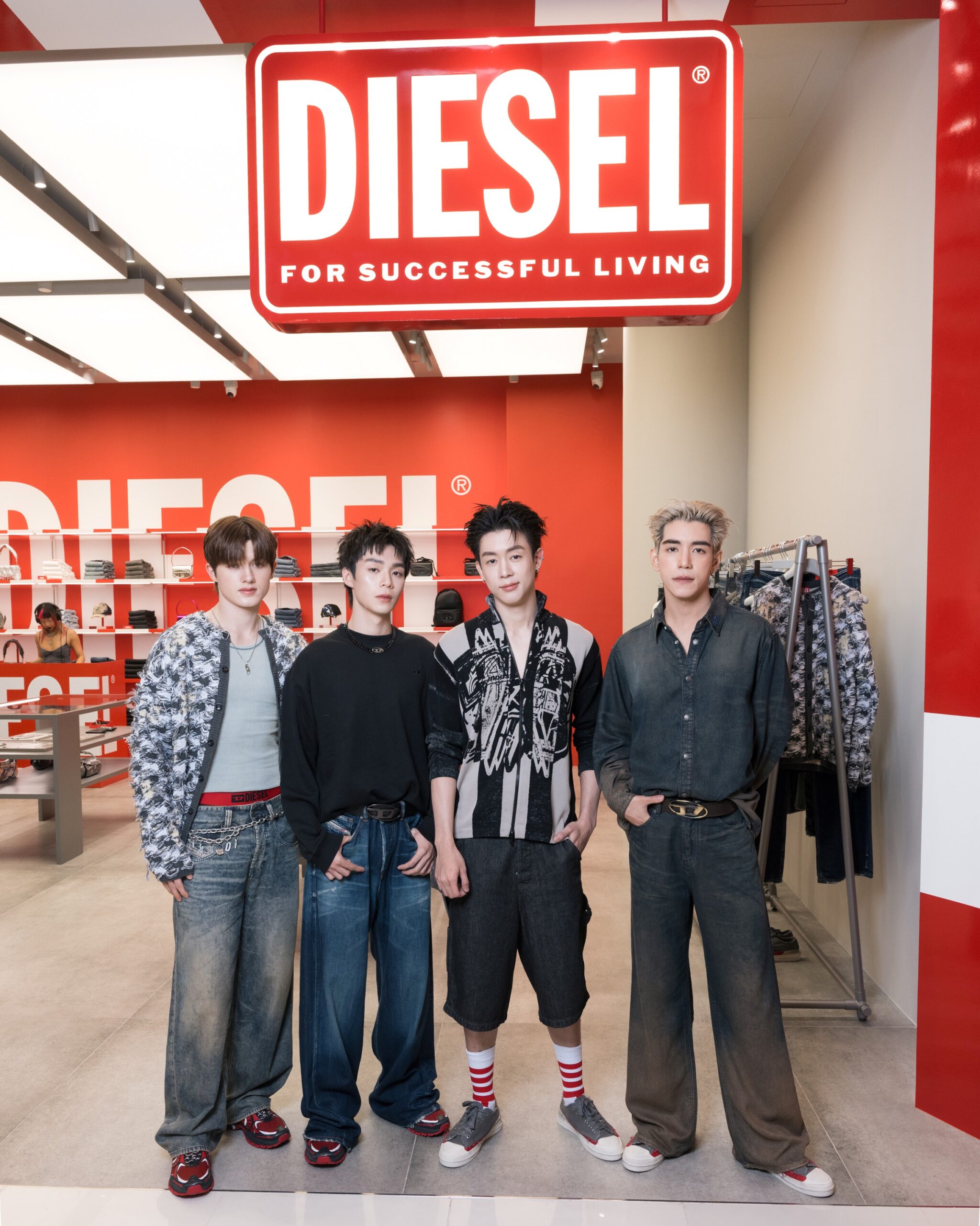 โดยมี 4 นักแสดงสุดฮอตจากซีรี่ย์ GELBOYS ได้แก่ นิว-ชยภัค ตันประยูร, ไป๊ป-มนธภูมิ สุมนวรางกูร, พีเจ-มหิดล พิบูลสงคราม และ เลออน เซ็ค และ จิงจิง-วริศรา ยู นางแบบสาวสุดเท่ เป็นตัวแทนของเหล่า Gen Z ที่มาร่วมงานด้วยลุคเท่ทรงพลังของดีไซน์จาก DIESEL Fall-Winter 2025 โดยแต่ละลุคไม่เพียงสะท้อนตัวตนและดึงสไตล์อันโดดเด่นของแต่ละคน แต่ยังถ่ายทอด DNA ความเป็น DIESEL ได้อย่างชัดเจน ผ่านโททัลลุคที่ผสานความเท่และความร่วมสมัยไว้ในทุกอณู
